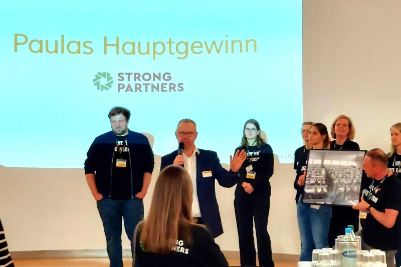 Gegen 17.30 Uhr kamen alle Teilnehmer noch einmal im Plenum zum Abschluss zusammen. Unter anderem zum Dank an alle Beteiligten und zur Ziehung der Siegerin des Networking Bingos durch den Gastgeber Klaus Ostermann. Eine wichtige Erfahrung und ein wertvoller Eintrag in seinen Lebenslauf, wie der Leiter Personal bei Westlotto humorvoll betonte – und danach kurz auf die Geschichte der Räumlichkeiten anhand eines alten Fotos hinwies.